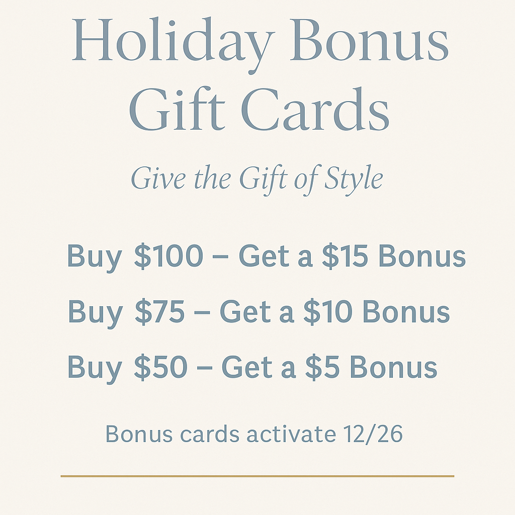 Give joy & style, pretty much the same thing, this Season with a bonus from Our Holiday Gift Cards!