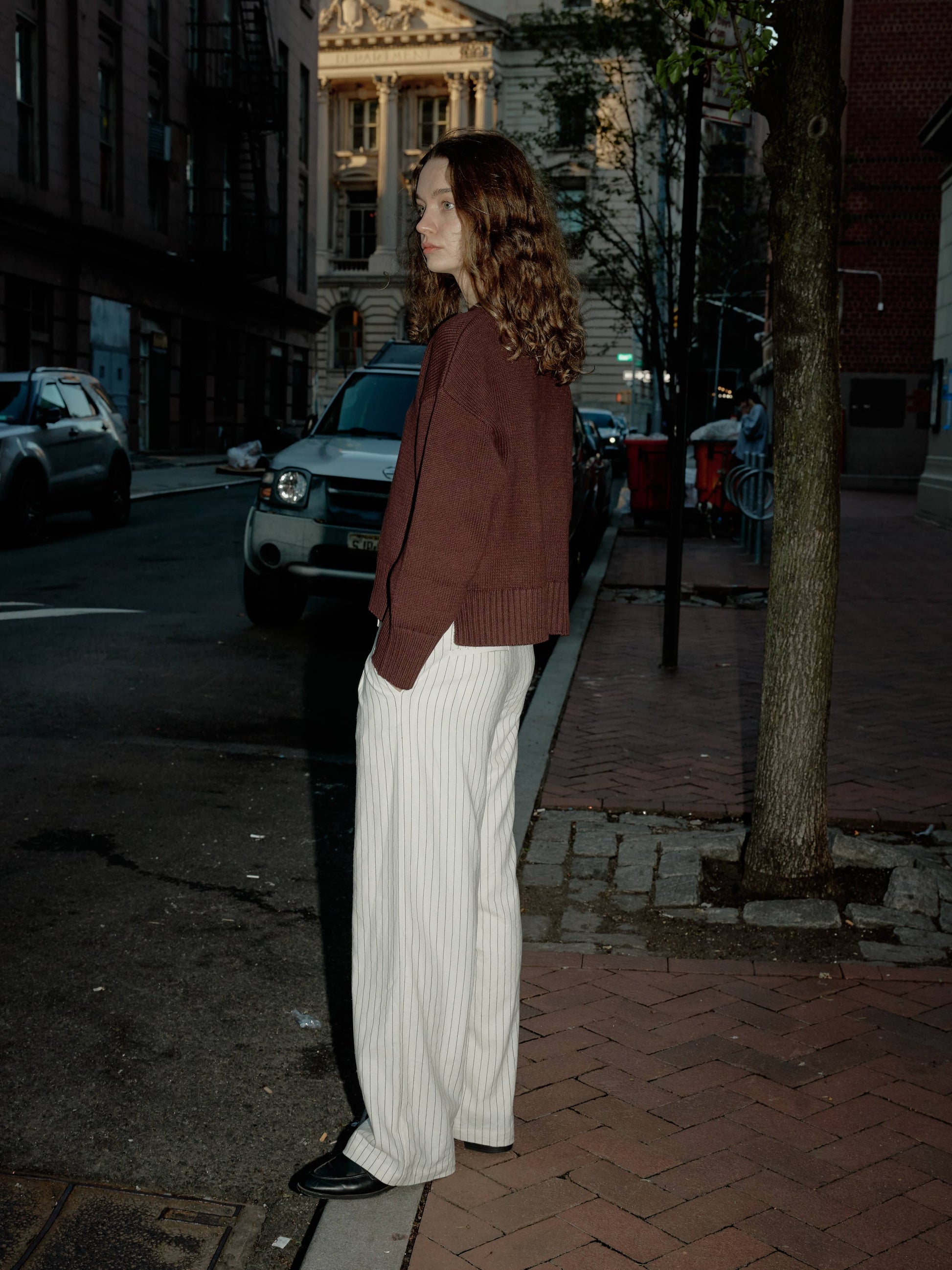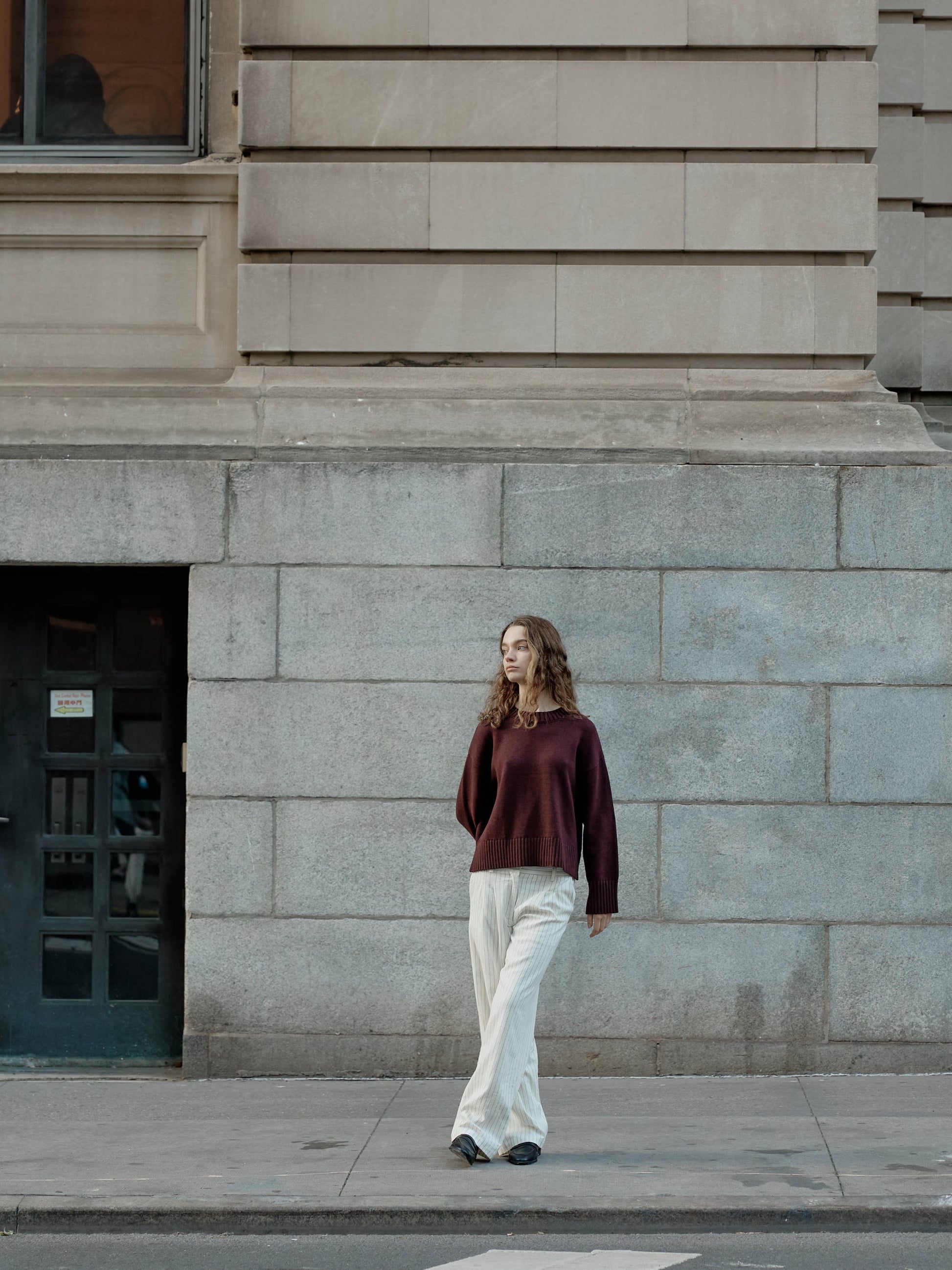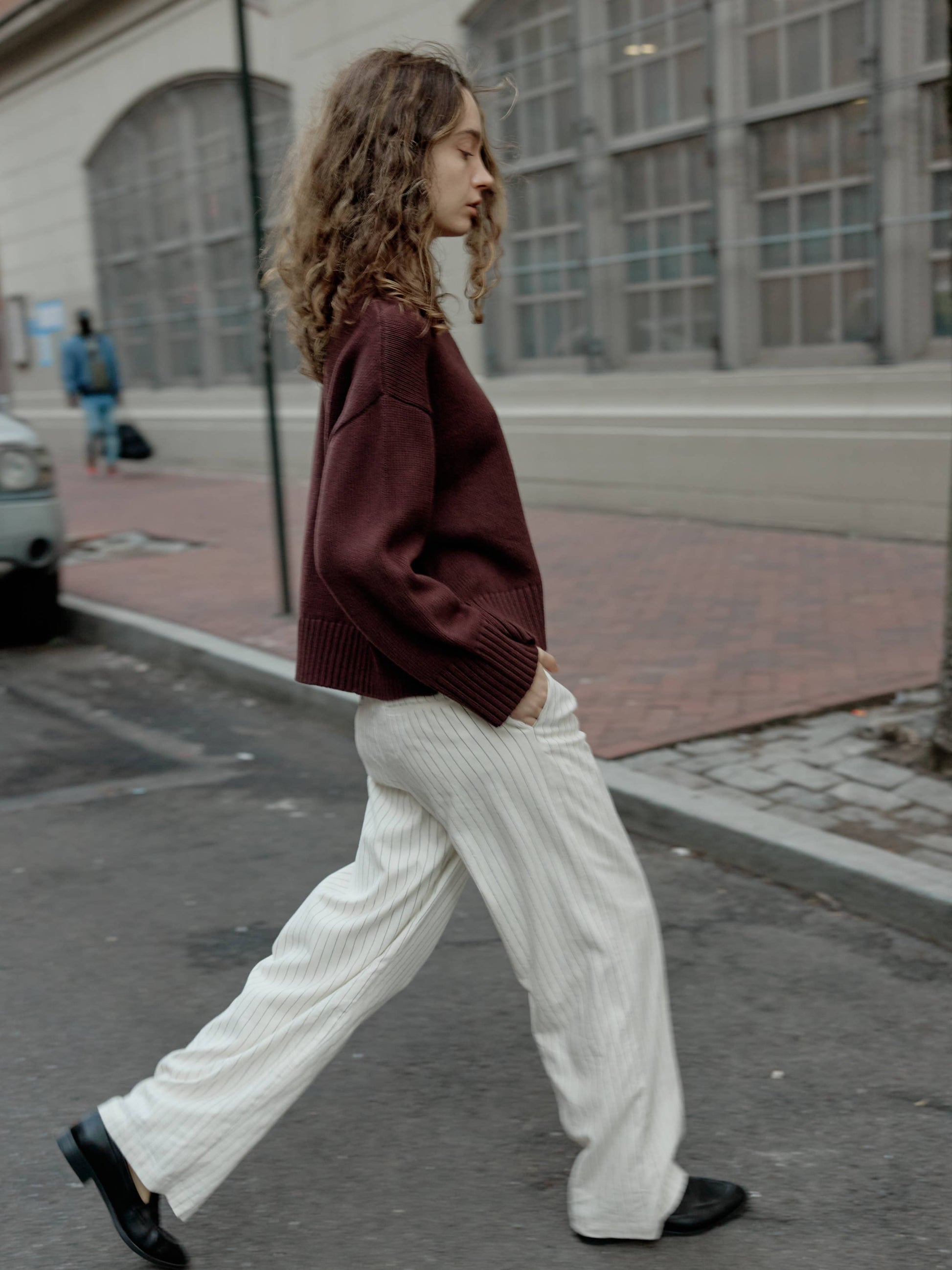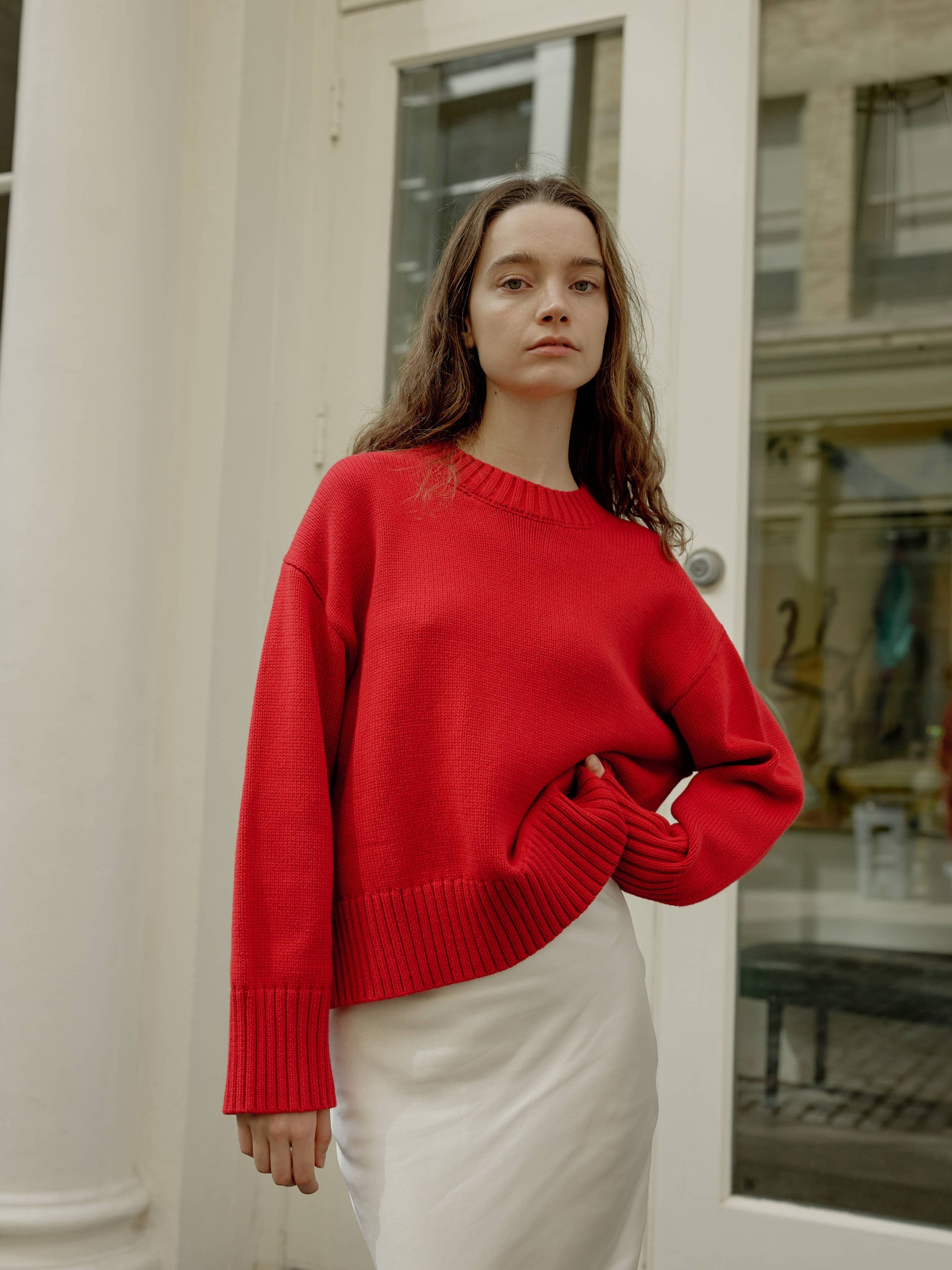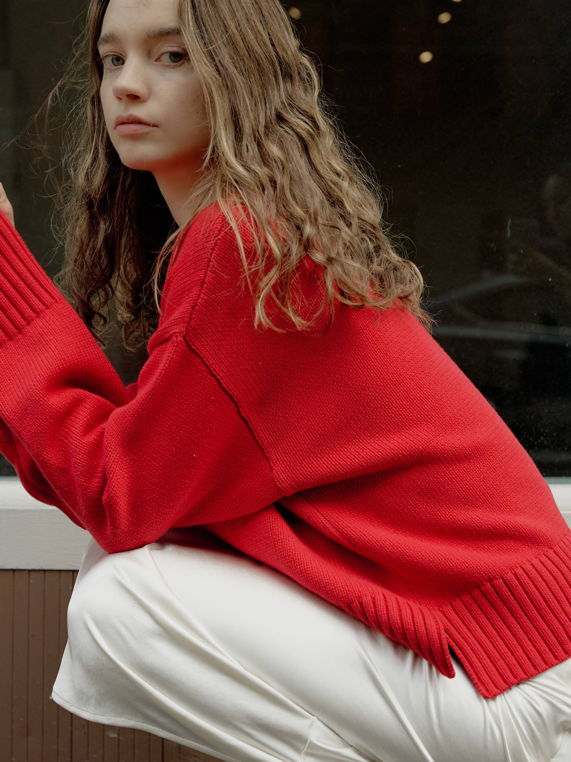The Asher Sweater is an oversized cropped pullover sweater with a classic rib detail at the neckline and hem. The semi-cropped length ensures a proportional fit and the mid-weight fabrication makes it perfect for the colder seasons ahead.