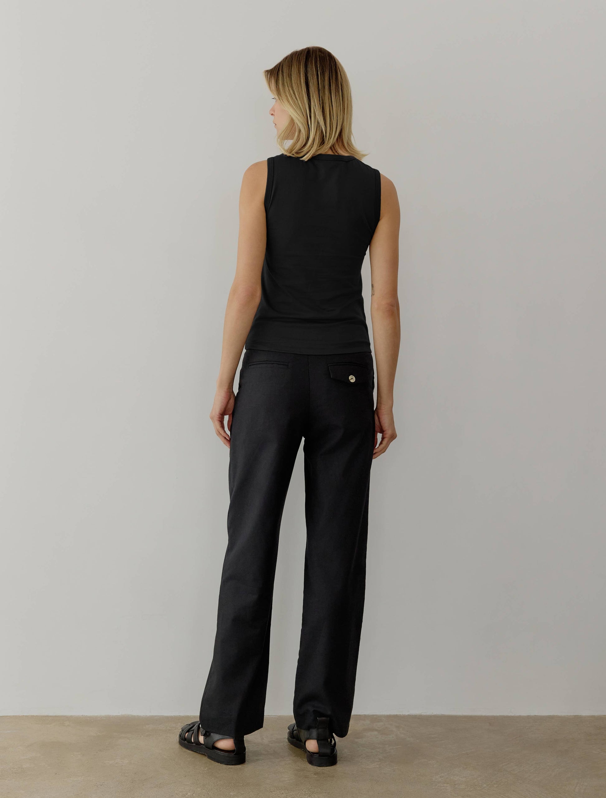 The Kima Top is a fitted sleeveless top with a twisted strap detail. The fitted bodice and mid-weight cotton jersey offer comfort and ease of wear for both casual and dressy occasions. This is true to size