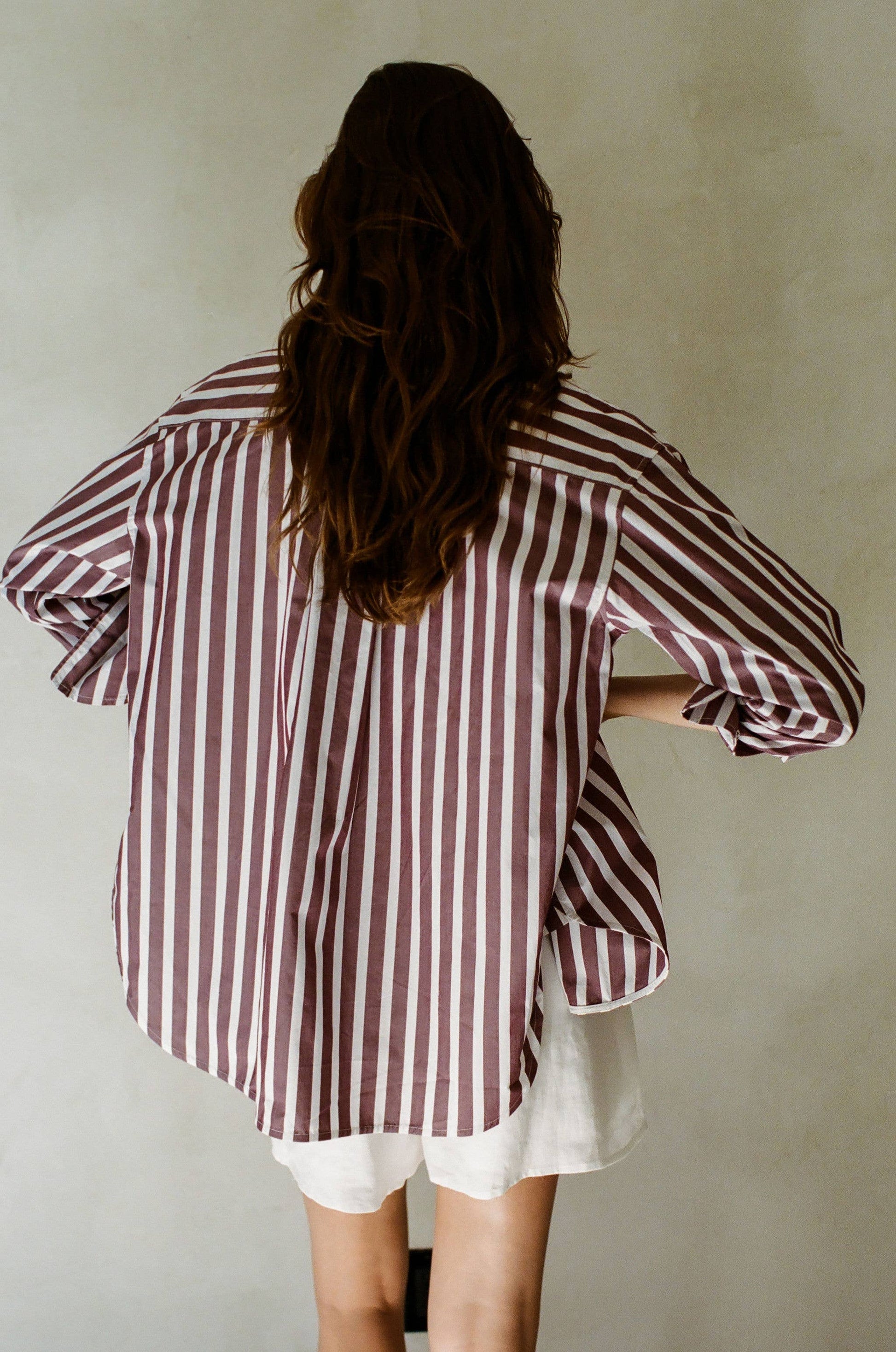 I am a delicate garment. Please handle me with care and avoid sharp objects and jewelry that may damage me. Slight variations in my details may occur as hand techniques were used to make me unique. I am a 100% woven cotton striped button-down collar neck long sleeve shirt top with a front pocket. Meant to be oversized.