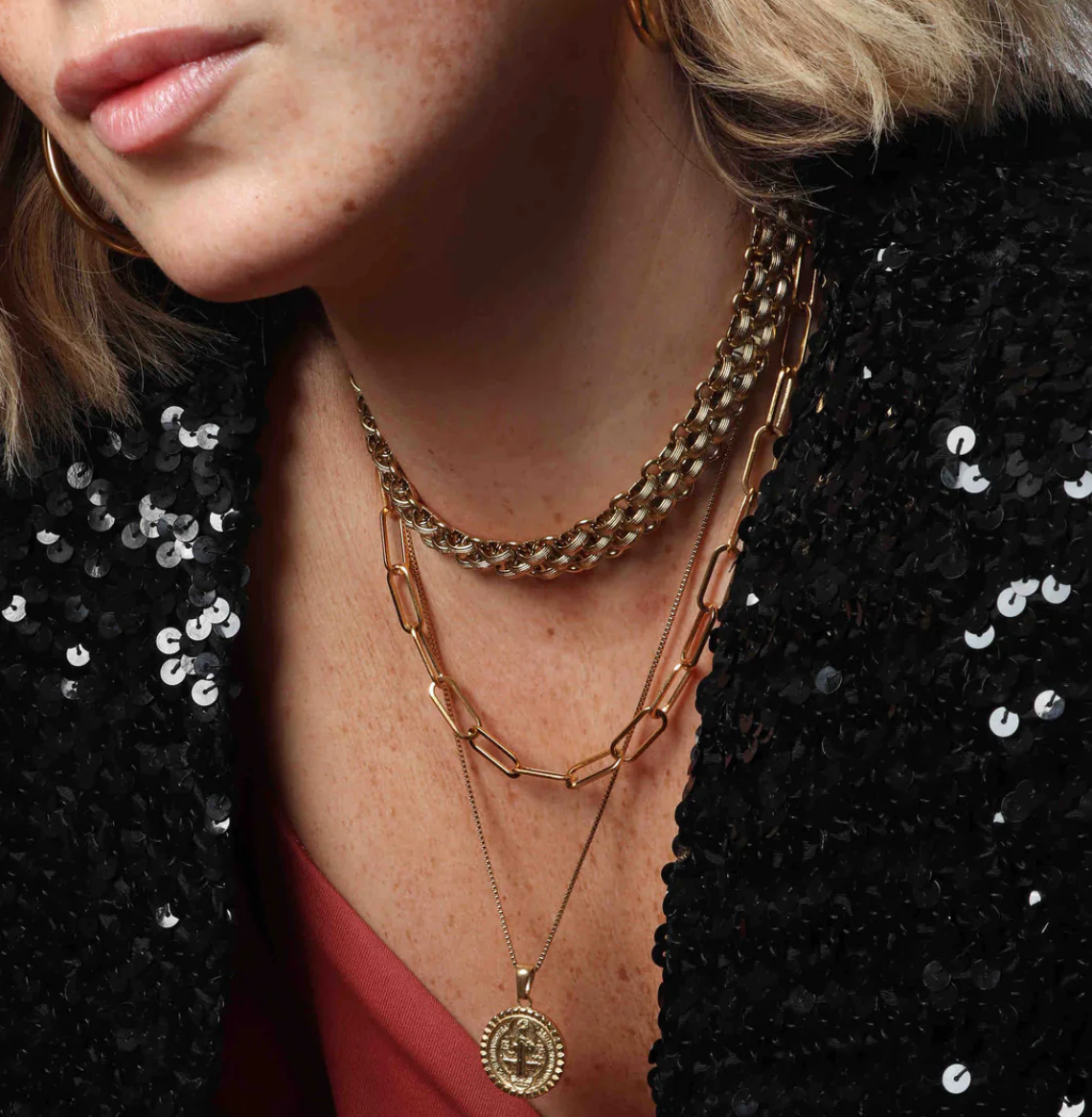 All Marrin Costello Collection Jewelry is crafted of a hypoallergenic + water resistant + sustainable stainless steel base. When not worn, please store in a protected place and use a cleaning cloth to spot treat as needed.