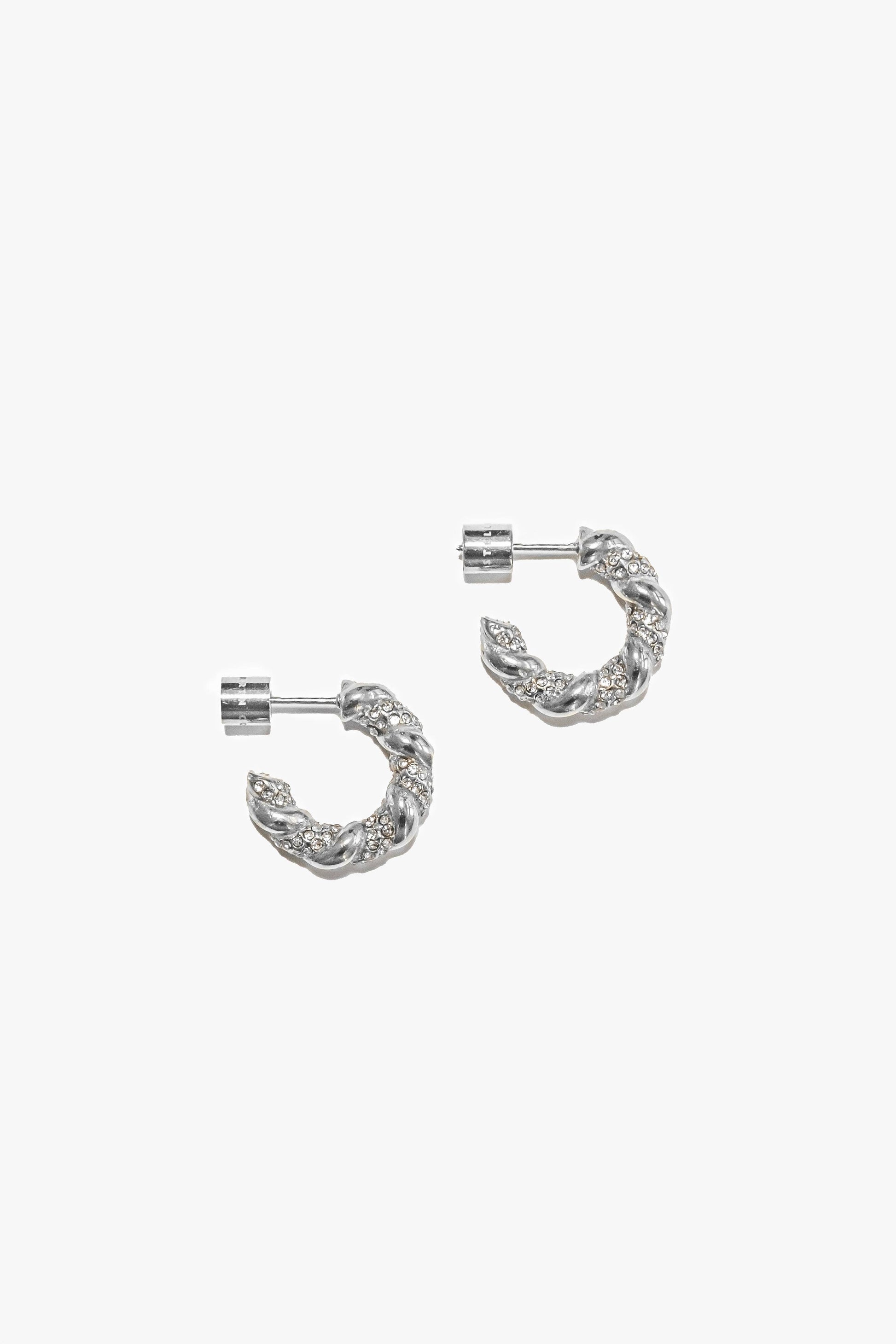 A modern take on a vintage aesthetic — the Rita Hoops in Pavé perfectly blends trendy and timeless into an earring style you will surely have forever and ever. A twisted, croissant-style hoop earring with simulated diamond detail — these post-closure hoops are accompanied by our custom earring backings to ensure your hoops stay secure and comfortable to wear all day long. Designer tip — complete the look by adding the Rita Cuff and the original Rita Hoop for a layered ear party. * 0.75" diameter * Post-back closure — for pierced ears * Signature customer MC earring backings for additional comfort and security