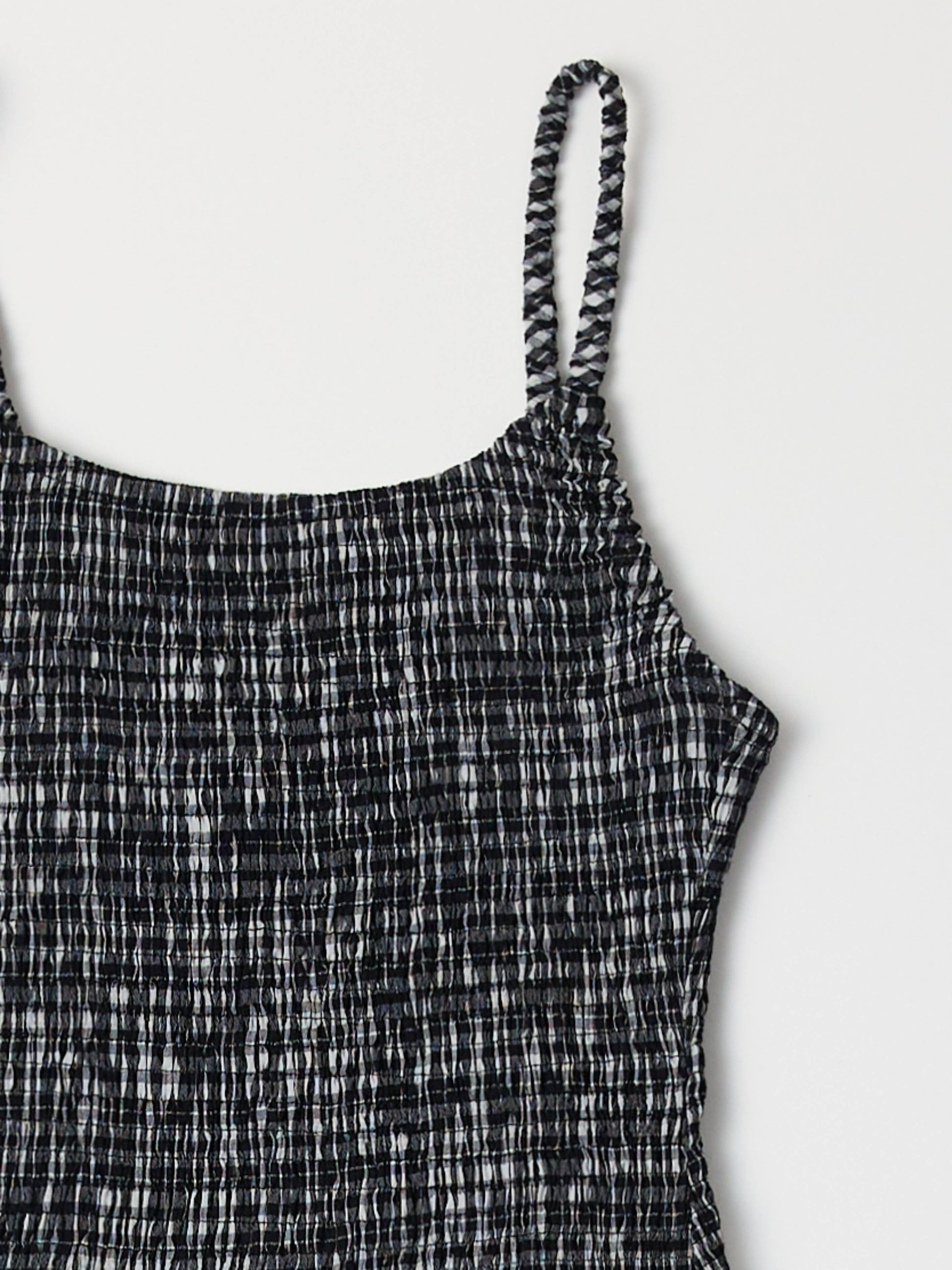The Ebony Dress is a midi-length, fit-and-flare style with a textured plaid print and elasticated shoulder straps for added comfort. Featuring hidden side pockets and a lower back neckline, it’s the perfect statement piece for spring and summer occasions. GREEN/BLUE