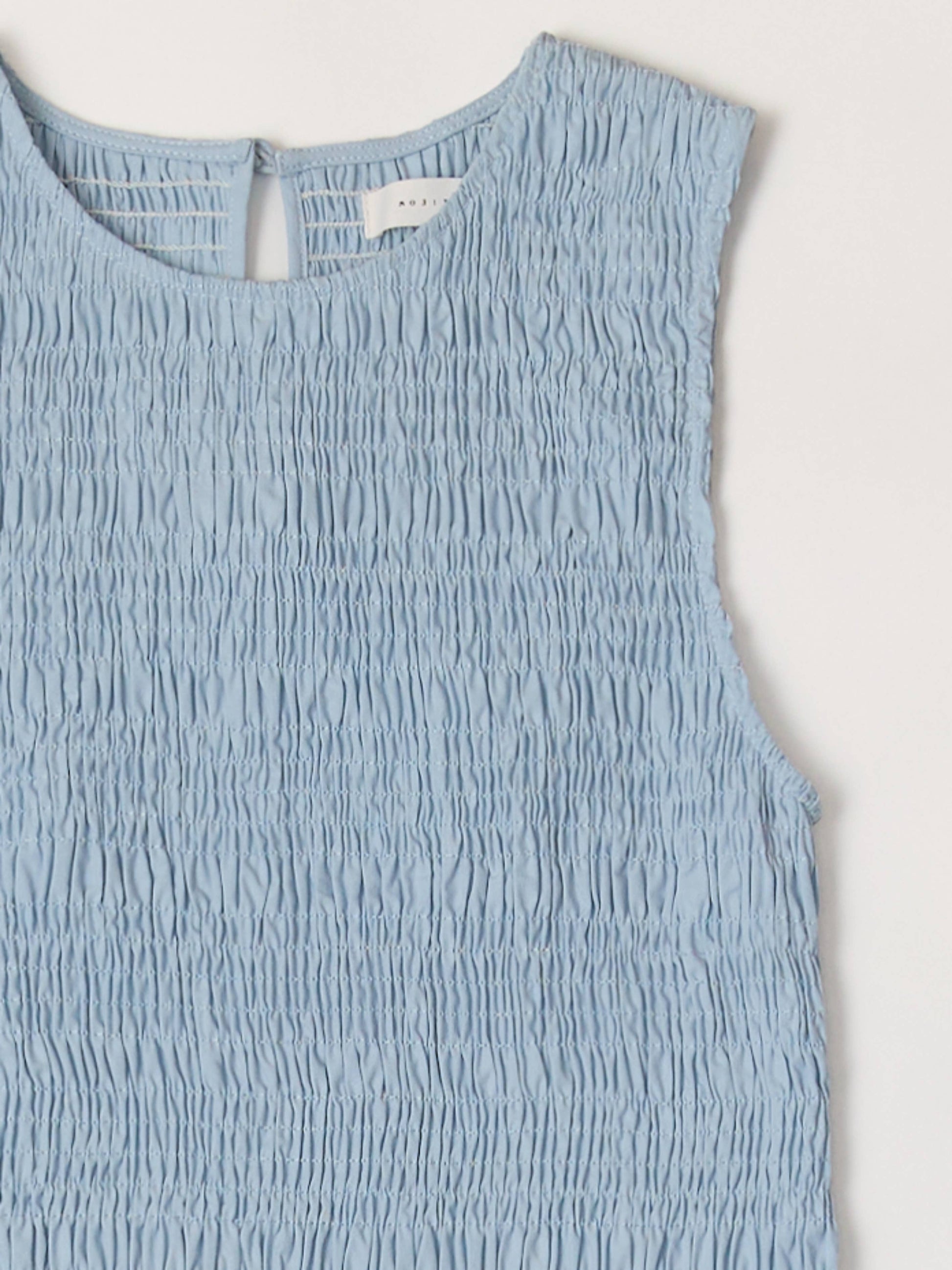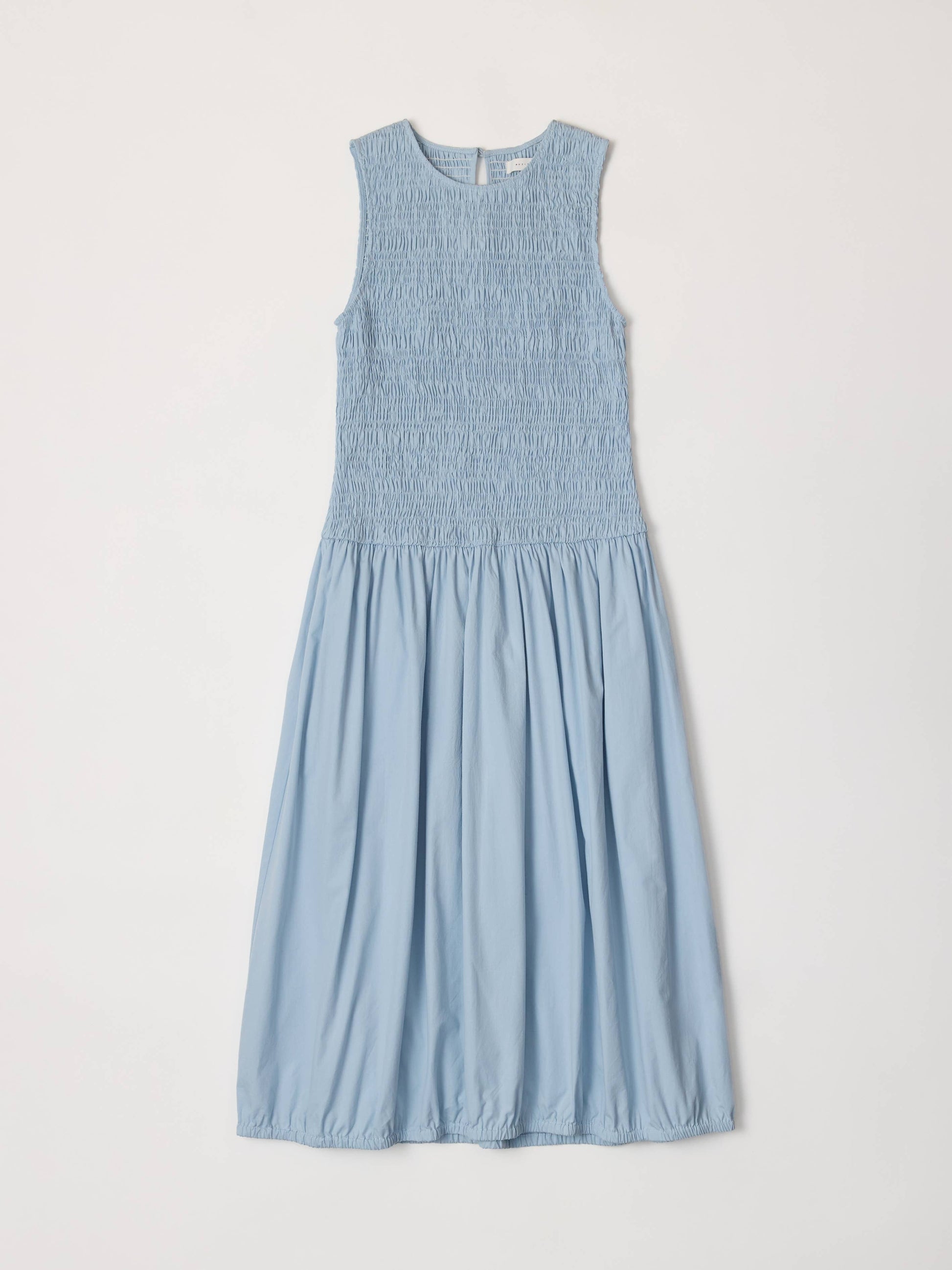 The Isla Dress is the perfect spring and summer midi dress designed with a smocked top, crew neckline, elastic shirred hem, and back keyhole button closure. True to size. Smocking on top has flexible stretch
