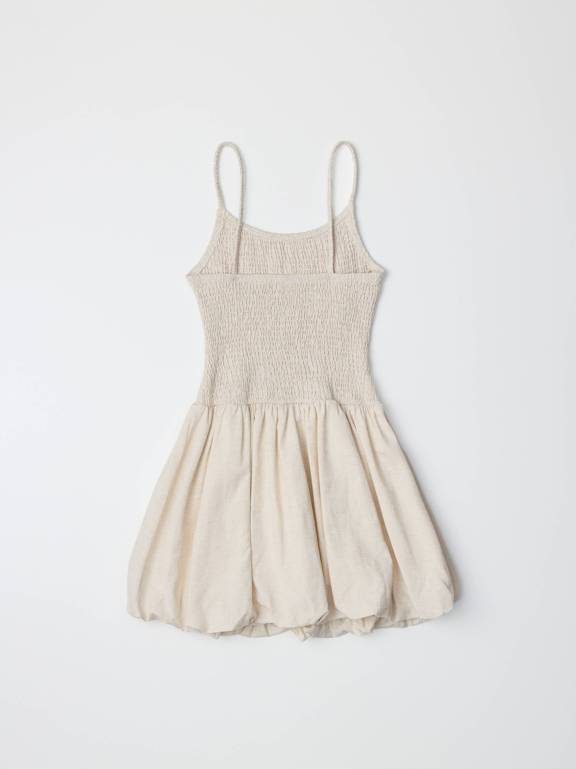 The Jaime Dress is a lightweight mini with a smocked top and voluminous bubble skirt for a playful silhouette. Finished with delicate spaghetti straps for an effortless, airy feel.