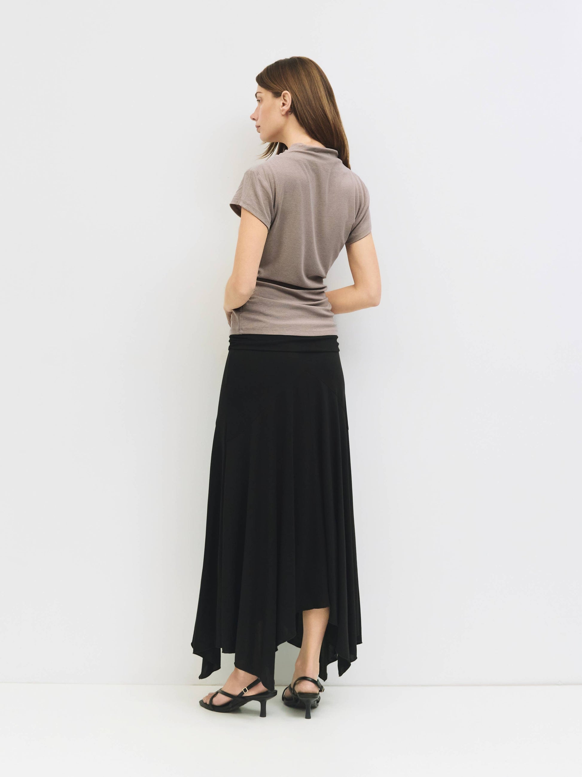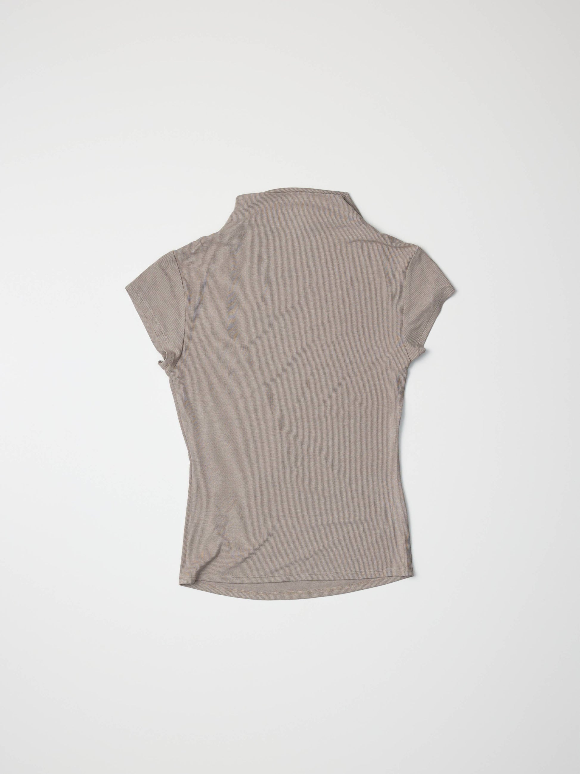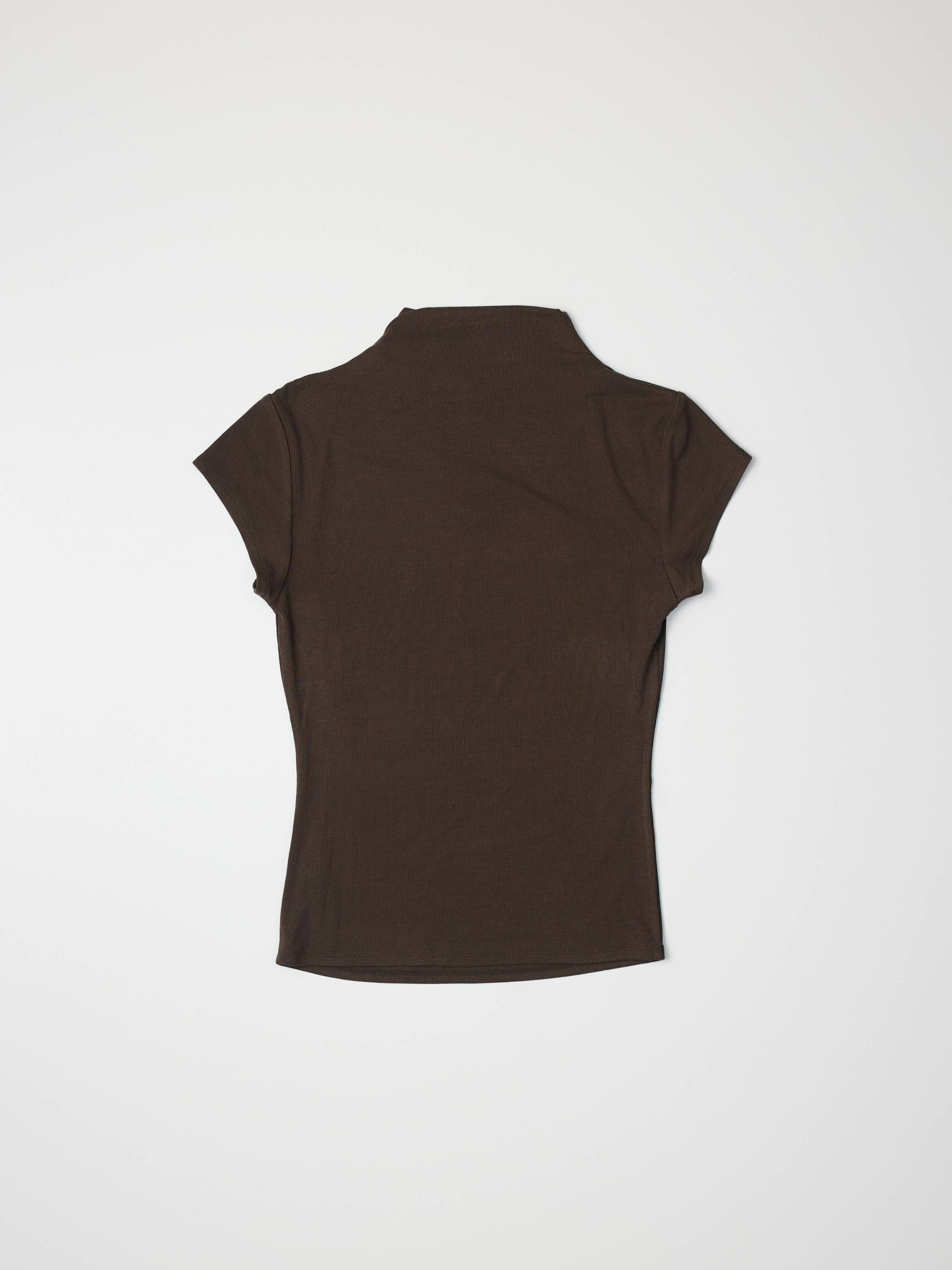 The Marissa Top is a form-fitting ribbed knit top that features a mock cowl neck and subtle shoulder pleating for added texture. With cap sleeves and a sleek silhouette, it offers a modern, refined look.
